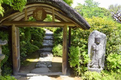 Сегодня день для души. А душа, в отличие от разума, сказала, что хочет тишины, уединения и покоя. И мой муж предложил это место. Это оказались бывшие частные владения известного японского актера времен немого кино Окоти Дендзиро, включающие в себя огромный японский сад, историческую виллу, несколько чайных домиков и большую возможность уединения, потому что вход сюда, в отличии от бамбуковой рощи, платный.
