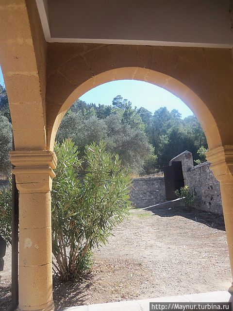 Монастырь примостился у основания холмов, как в гнездышке.
