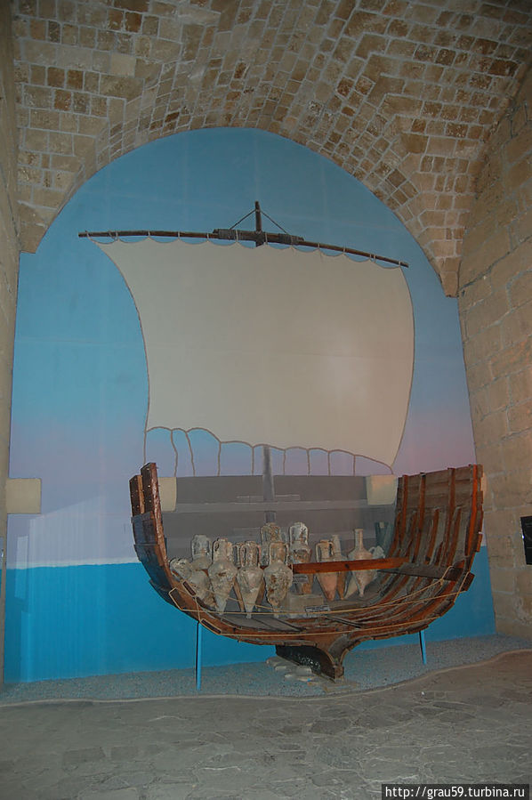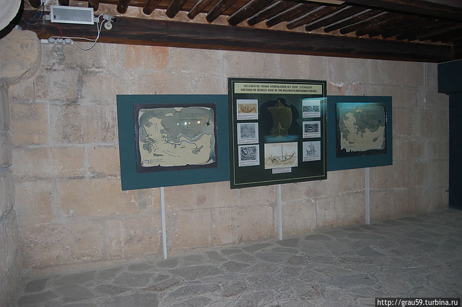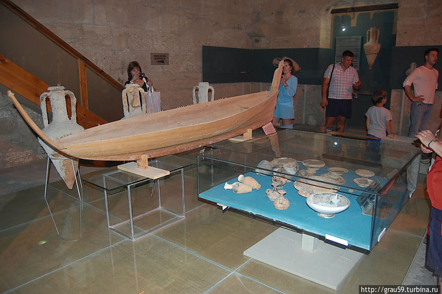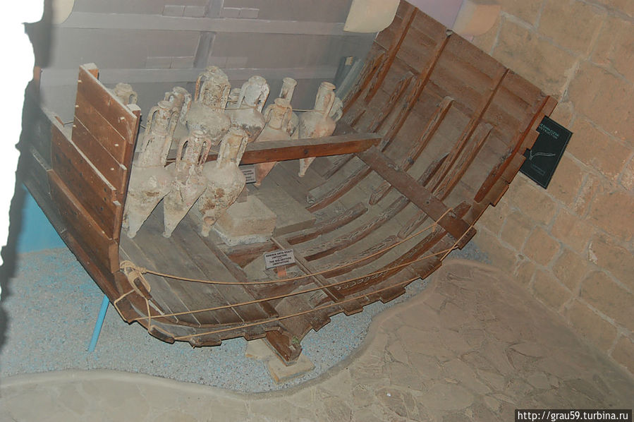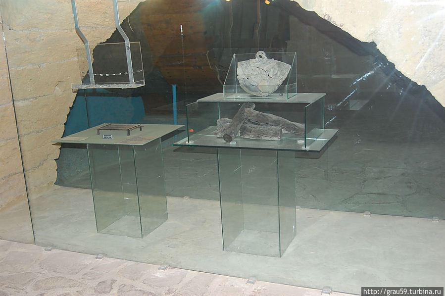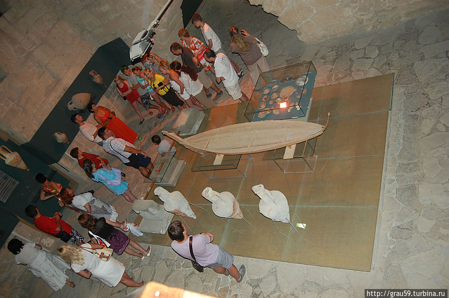 Крепость трёх эпох посмотришь фотографии и экспонаты на первом, затем поднимешься на второй этаж по лестнице слева, то на десерт останется главное блюдо музея — запаянный в стеклянной колбе и освещенный искусственным светом корабль времён Александра Македонского. Чтобы увидеть его необходимо подняться по крутой лестнице справа и, толкнув тугую дверь, попасть в святую святых музея. Много народа на узких проходах вокруг корабля не помещается и поэтому иногда лучше опередить поток экскурсантов и подняться одним из первых.