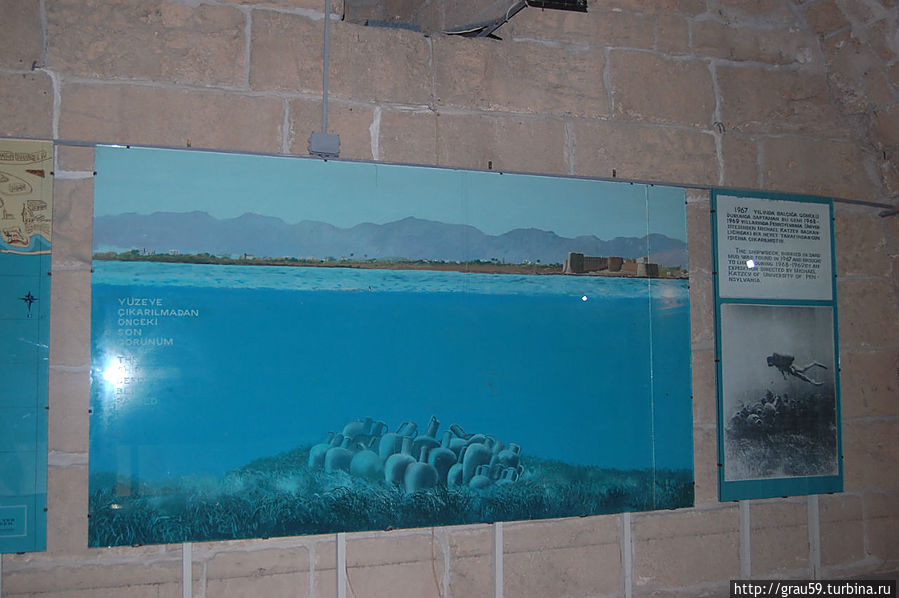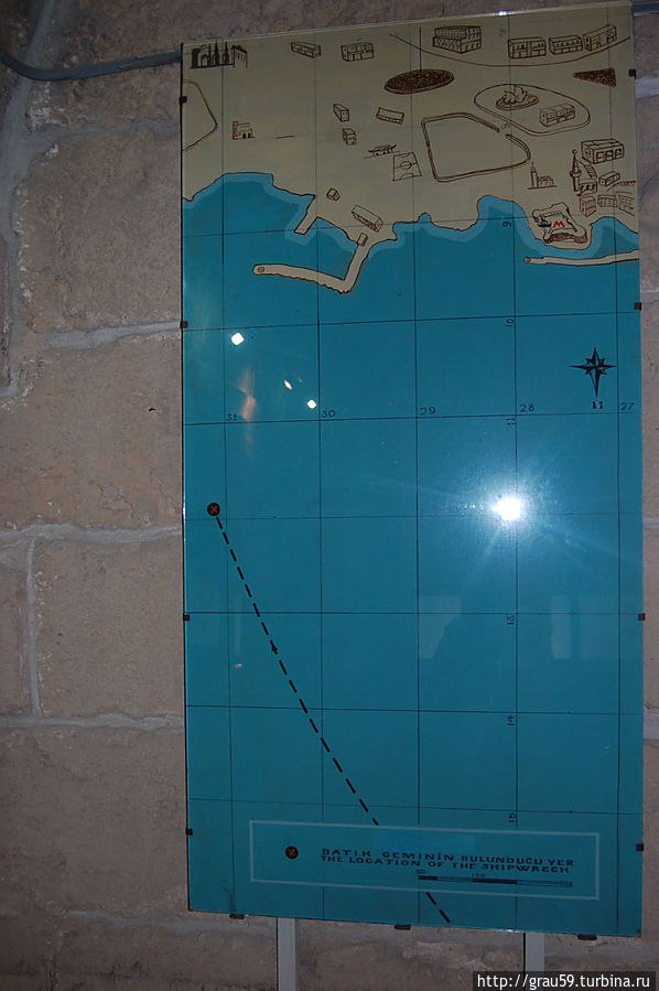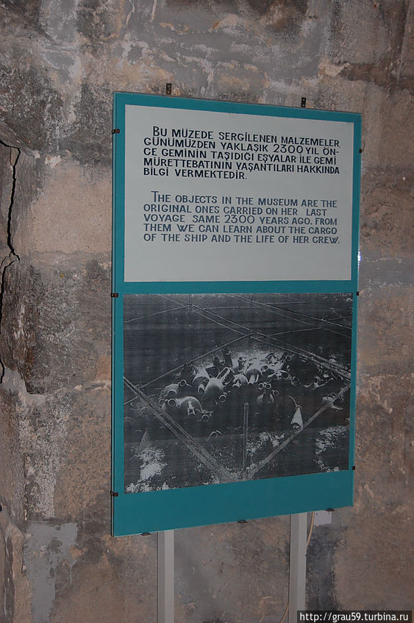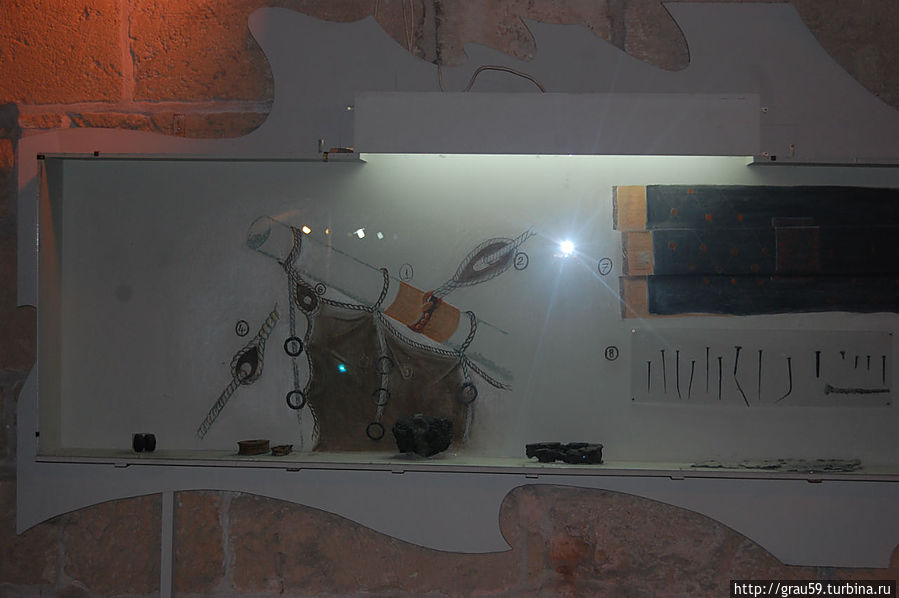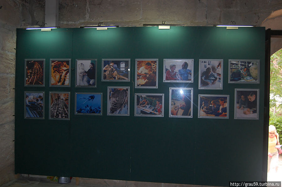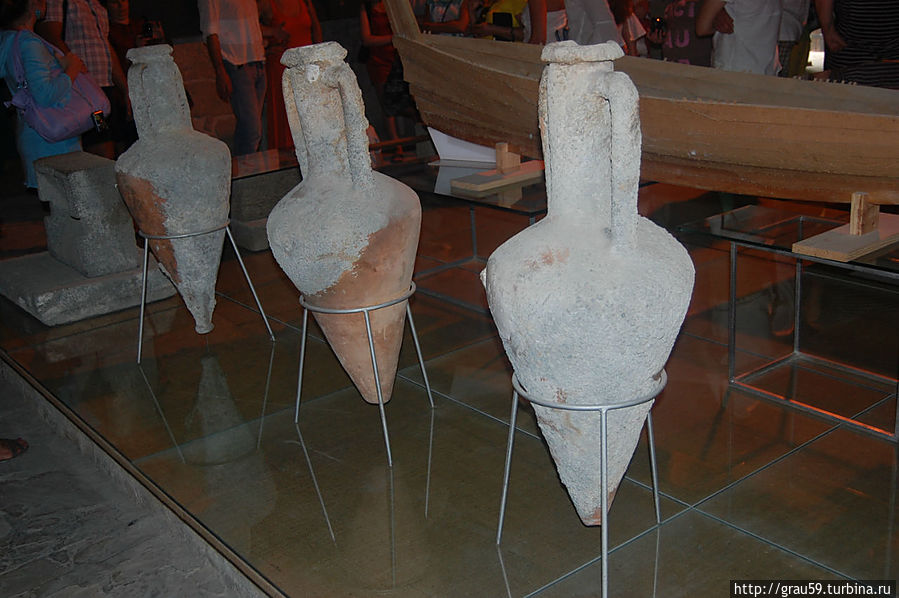 Крепость трёх эпох посмотришь фотографии и экспонаты на первом, затем поднимешься на второй этаж по лестнице слева, то на десерт останется главное блюдо музея — запаянный в стеклянной колбе и освещенный искусственным светом корабль времён Александра Македонского. Чтобы увидеть его необходимо подняться по крутой лестнице справа и, толкнув тугую дверь, попасть в святую святых музея. Много народа на узких проходах вокруг корабля не помещается и поэтому иногда лучше опередить поток экскурсантов и подняться одним из первых.