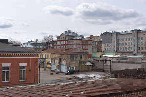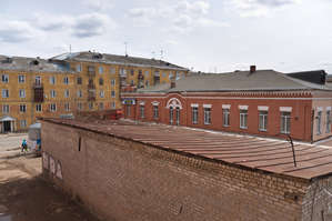 Поднялся по наружной лестнице на второй этаж детского кинотеатра "Смена", отсюда особый вид. По этой железной лестнице нас обычно выпускали после киносеанса.