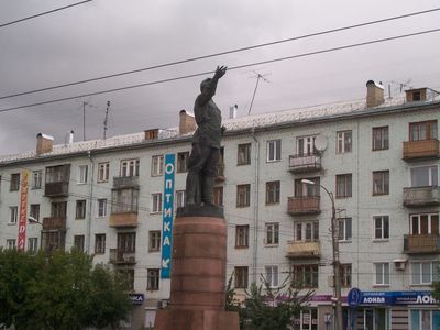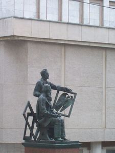 Ильич перед зданием областной администрации, на заднем плане его профиль виден