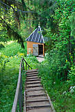 Тропинка уходит круто под гору, где из склона оврага бъет родник, а над ним устроена небольшая часовенка.