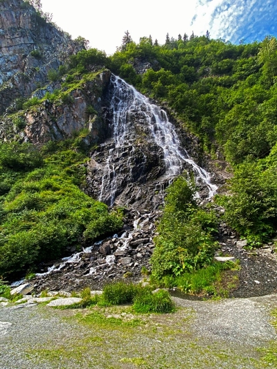 То "Хвост лошади" падает со стороны дороги, и здесь можно полюбоваться водопадом с близи...