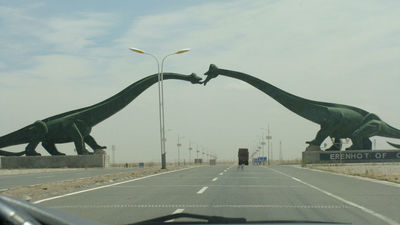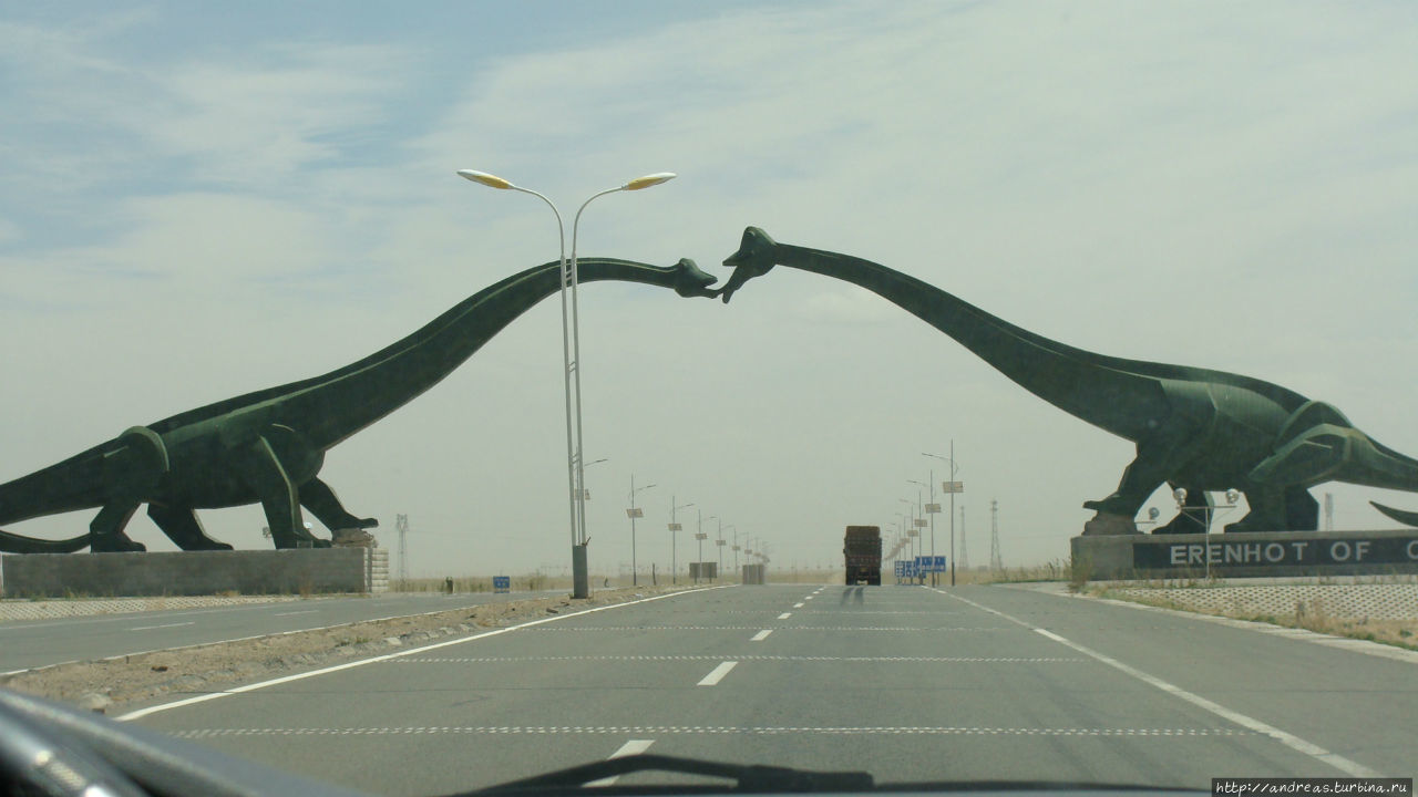 В Китай я приехал в составе экспедиции «По следам предков», возглавляемой Сериком Нарысовым – Председателем Центрально-Азиатского историко-дипломатического Общества (Казахстан). Первым городом, который мы увидели, был Эрэн-Хот, который в народе называют Динозавр-сити. Около 100 лет тому назад в его окрестностях были обнаружены останки динозавров и сейчас на местах раскопок вдоль дороги стоят фигуры динозавров. А венцом всего этого разнообразия стал дуэт целующихся динозавров. Эти 19-метровые статуи составляют общую длину порядка 80 метров. Впечатляет!