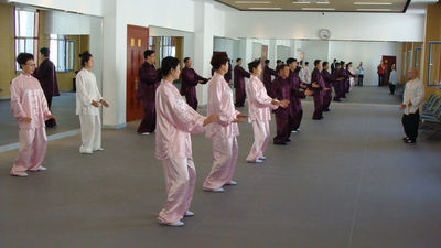 В утренней программе последнего дня нашего пребывания в Даляне было посещение музея культуры ушу. Он является самым большим музеем китайского ушу в мире. Когда мы вышли из машины, директор музея и с десяток сотрудников встретили нас аплодисментами. Началась экскурсия. В музее всего 4 этажа. В зале просмотра висит много картин, из которых можно узнать историю и направление ушу. В зале ушу представлены 18 видов оружия. Круглый год идут выступления ушу для туристов.