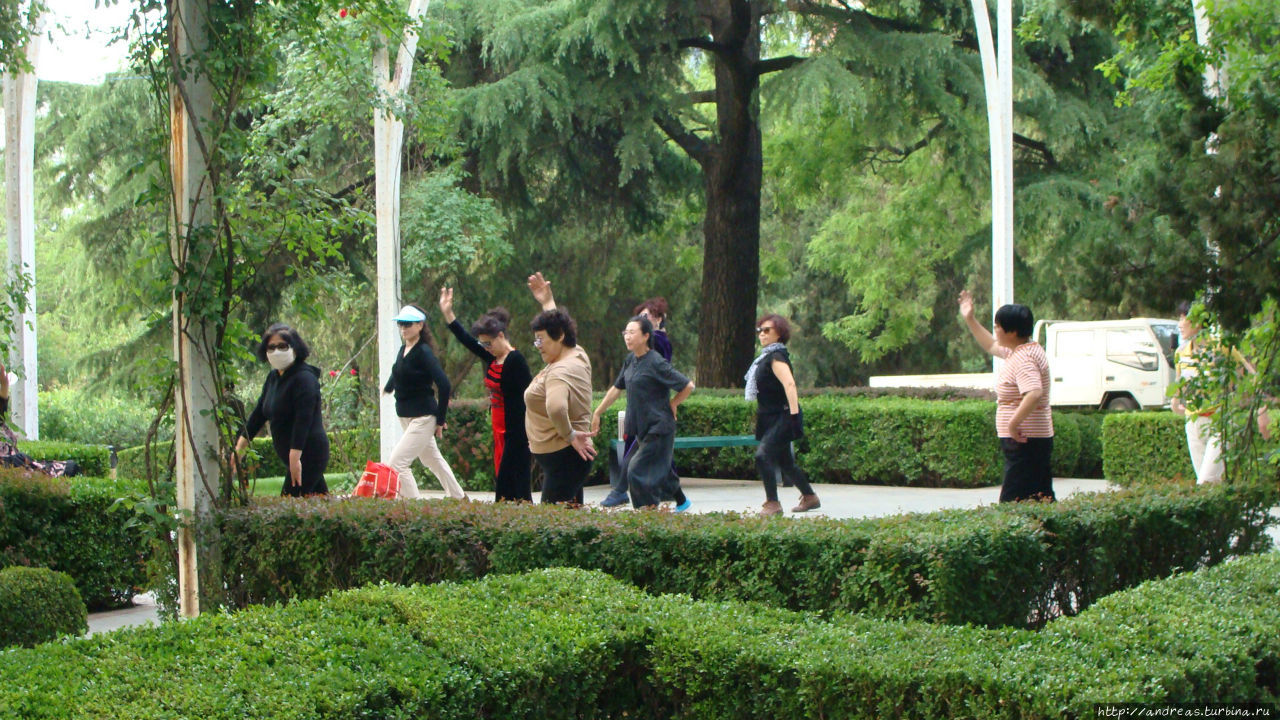 В отличном настроении, с хорошим самочувствием, попрощавшись с директора курорта, мы вернулись в центр Даляня. Там у нас было 2 часа на посещение огромного супермаркета. Но, так как он был дорогой, то мы с Олегом пошли гулять по соседним маленьким магазинчикам. Мы даже успели совершить прогулку в парк неподалёку, где китайские женщины занимались гимнастикой.