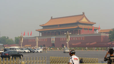 В 6 часов утра пришла проводница и потребовала снять белые тапочки, которые входят в комплект белья. Я был сонным и не сразу понял, что она хочет. Проводница начала переходить на эмоции и я сразу же проснулся и всё понял. Выйдя из поезда, мы поняли, что в Пекине дышать нечем. Смог укутал город густым облаком, дома в дымке, солнца не видно, китайцы ходят в масках. Но не сидеть же на вокзале. У нас было до поезда в Урумчи несколько часов и мы решили посмотреть площадь Тяньаньмэнь – знаковое место столицы Китая. Отправились туда пешком, так как было недалеко.