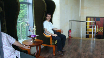 По возвращении в начальную точку экскурсии, Лили Жанг показала нашей делегации отель клуба. Внутри всё устроено довольно роскошно, спальни украшены драгоценным деревом и камнями, ведь сюда приезжают играть богатые люди.