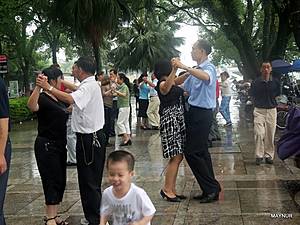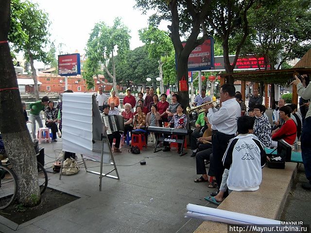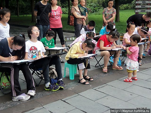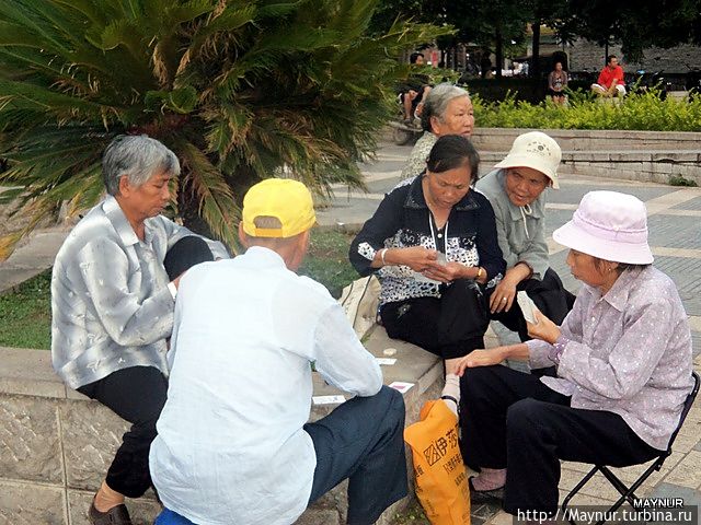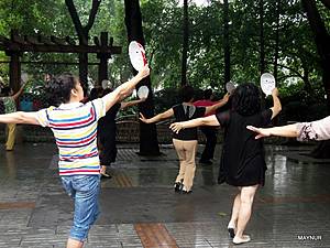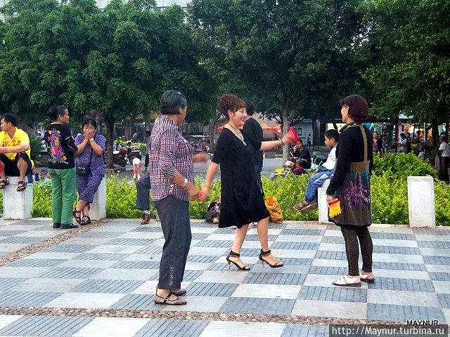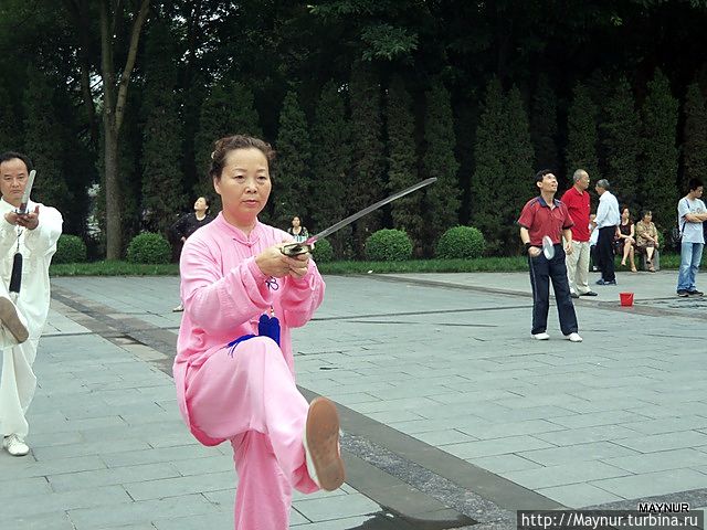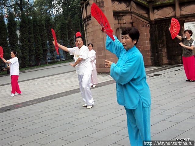 Но больше всего удивляли жители Китая — очень непосредственные, шумные, любопытные. Используя любую открытую площадку, в скверах, парках они с утра до вечера занимаются медитацией, танцуют с предметами и без них, разучивают танцы, поют хором и по одному, играют на музыкальных инструментах. Досуг их интересен и разнообразен и весь на виду у проходящих мимо людей.