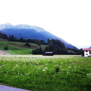 Вот за водой, травкой и капелькой снега на вершинах меня постоянно тянет в Альпы. На границе Австрии и Германии, в маленьком поселке Кёссен я нашла свой персональный рай. "Покорить горы, приблизиться к солнцу, насладиться чистым горным воздухом, великолепными альпийскими лугами, лучшими региональными блюдами и потрясающей горной панорамой..." – зазывал нас сайт курорта Кайзервинкль, центром которого и был наш поселок. В первый же вечер мы пошли знакомится с деревней. Для этого надо было пройти всего 2 км по трассе и вот, мы уже на окраине. Зимой тут, вероятно, полно туристов. А чем живут люди летом? Тут довольно большой стадион, несколько небольших предприятий, например вот это, по обработке камня.