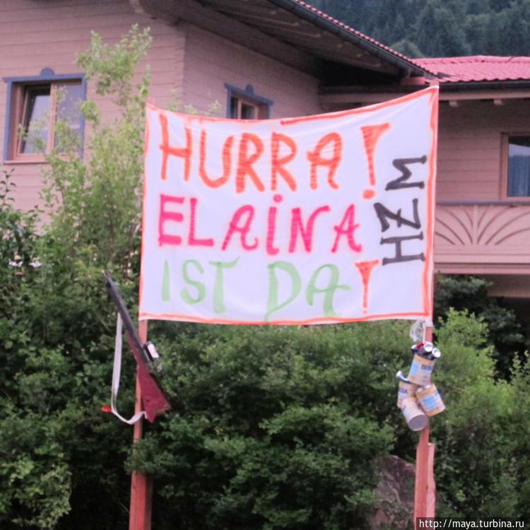 На следующий день начали сразу со знакомой тропе для пешеходов и отправились по ней дальше. Нашли мы новый район. В новостройке проглядывалась интересная особенность: у новеньких домов стоят потрепанные, видавшие виды машины, а новенькие машины – у ворот старых домов. А еще мне понравились объявлене на домах! Сообщение о рождении ребенка мы видели и в старой части. А я сейчас хочу показать фото из новой части. Тут нет магазинов, кафе и прочего. Зато я нашла лесную улицу для прогулок на лошадях. Есть там и ферма, где можно нанять лошадь, но, само собой, в этот час уже закрыта.