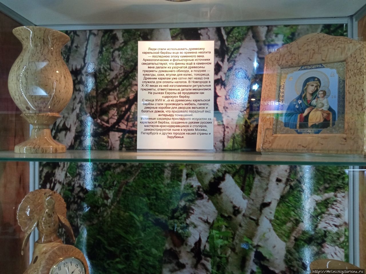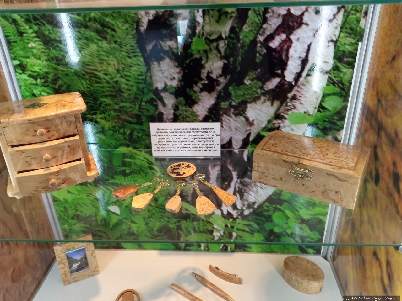 Отдельная экспозиция посвящена карельской березе и изделиям из нее.