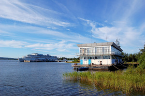 Большой речной вокзал в Петрозаводске не работал, билеты на теплоходы продавались в маленькой будке у причала. Я подошел почти к самому открытию, часам к 8 утра, но ближайшее время, на которое мне предложили билеты, было только в 14:15. Что характерно, в расписании "Метеоров" такого времени не было.