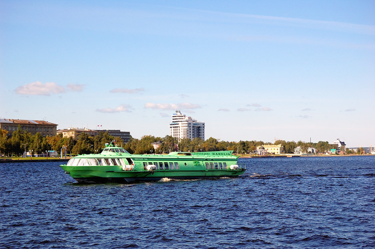 Петрозаводска скоростные теплоходы на подводных крыльях. Дорога занимает 1 час и 15 минут. Стоило это удовольствие 1950 рублей. А я еще считал, что в Новой Зеландии поезда дорогие. Больше 40 евро!!!