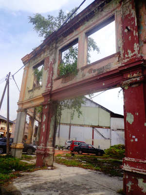 Обзорная фотоэкскурсия по центральной части города: Ж\д вокзал, мэрия, китайские дома 1930-ых,, почта, виды с моста на реку, вокзал и мечеть, разбитый местный тротуар, городские граффити по Джалан Пос Бахару(северене моста через реку, по пути к мечети),