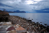 Изрезанный берег утопает в море.Солнце, спрятавшись за тучу, уже приблизилось к горизонту и до заката оставалось совсем немного времени.