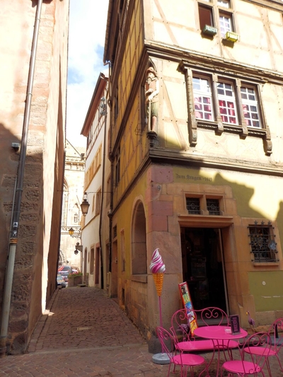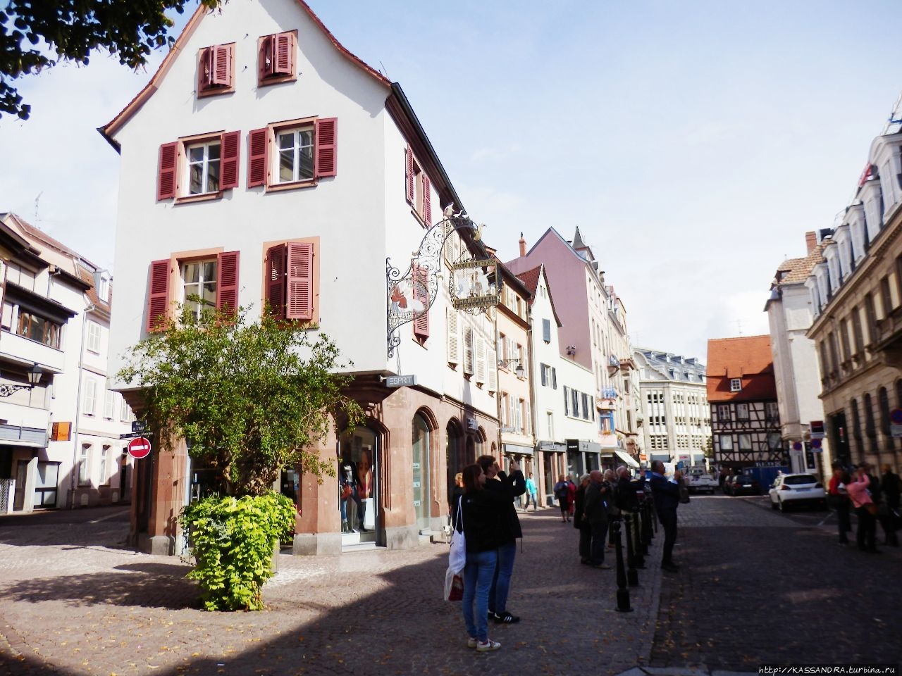 В Кольмаре многие вывески выполнены в традиционном эльзасском стиле по мотивам иллюстраций местного художника Анси.