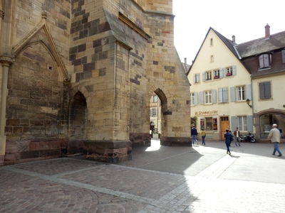 Напротив южного фасада церкви Святого Мартина расположены два исторических сооружения: самый старый в Кольмаре «дом Адольфа» — светлое здание и интересный фахверковый дом XV века слева по соседству с ним.