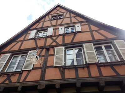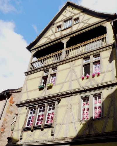 Скульптура бородача 1609 года была перенесена сюда из другого дома, с улицы Берты Молли в Кольмаре.