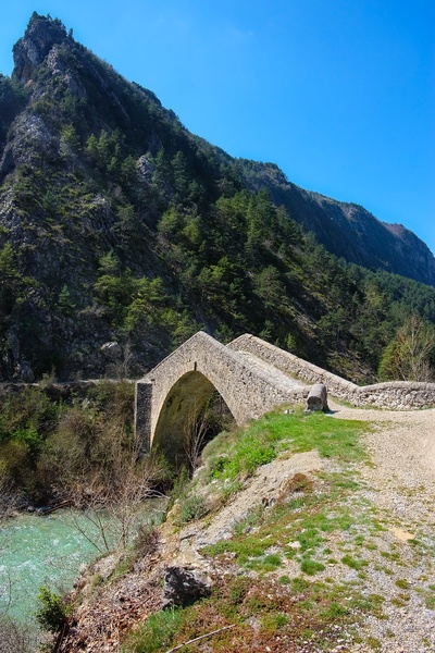 … и сделать первый привал возле «моста Королевы Жанны» (Le pont de la Reine Jeanne — 43°57'31.0"N 6°44'02.9"E). Назван он так предположительно в честь весьма экстравагантной неаполитанской дамы из анжуйской династии, которая вошла в историю тем, что за милую душу ухандокала своего венгерского муженька-принца, потом ради получения индульгенции за грош с копейками уступила Авиньон продажному на всю рясу Папе из Великого Рима, но в итоге все равно была отлучена от церкви и придушена по приказу Карла Дураццо. Ловила ли она в этих местах верткую форель или топила своего очередного любовника, история умалчивает.