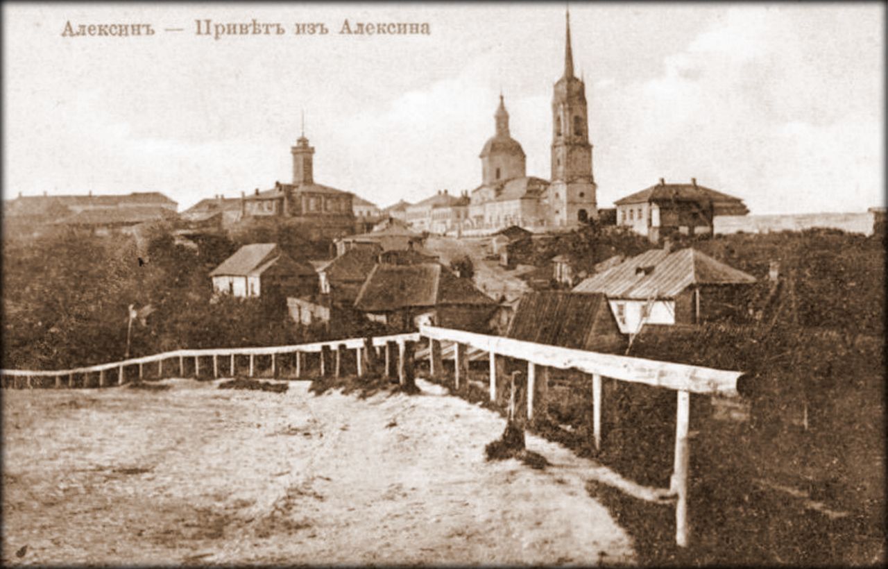 Но усадьба эта была не очень старинная; архитектура барскаго дома могла быть отнесена к характеру построек времен Императора Александра I: балкон представлял ротонду с колоннадой под куполом. Сидим мы, бывало, летом на этом балконе после поздняго обеда (у Чертковых обедывали по-английски — часов в шесть) и любуемся Окой. Она разлилась широко внизу густого парка, а противоположный берег реки представляет равнину зеленых лугов; вдали на горизонте, освещенный закатом солнца, в розовом свете его последних лучей, является, как на ладонке, хорошенький уездный городок Алексин Тульской губернии.