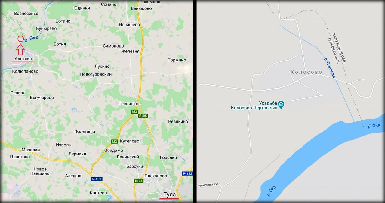 От Тулы до нужного объекта ехать примерно 75 километров. Сначала до города Алексин далее 6 км до Колосово. Это место расположено недалеко от реки Ока практически на границе Тульской и Калужской областей.