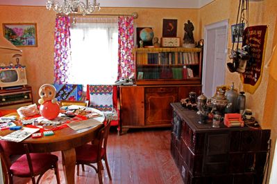 Я по привычке начал заглядывать в окна, но тут нам повезло. Женщина — смотритель музея как раз проходила мимо, и предложила открыть нам эти два дома, раз уж мы единственные посетители на тот момент, да еще очевидно проявляем интерес...