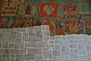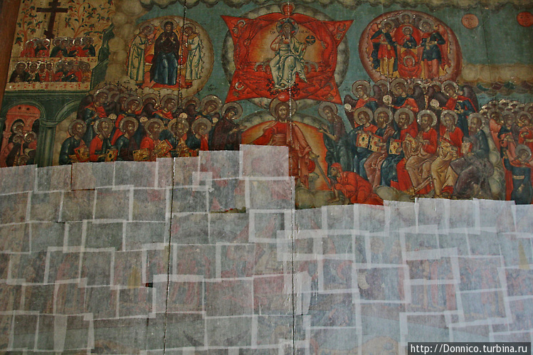 Внутри же изумительный небесный потолок с изображением Христа и движущихся вокруг него по кругу ангелов и херувимов.