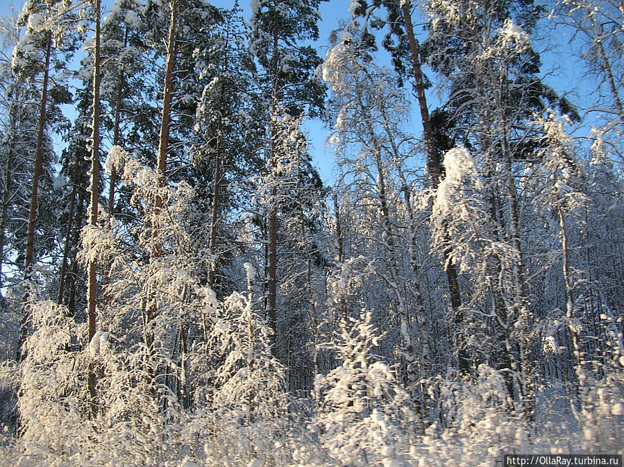 Ещё с трассы открывается замечательный вид на город и озеро. К сожалению, мы так и не сделали ни одного фото отсюда, откладывая на потом. Зато сфотографировали зимний лес,