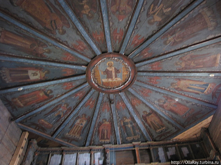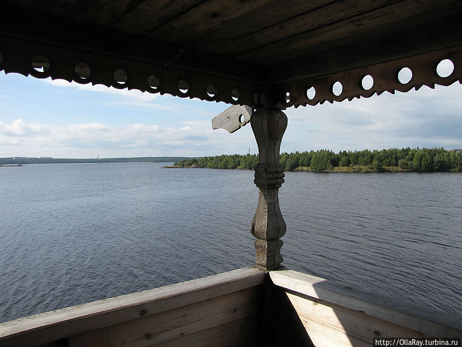 В городе работает ещё Краведческий музей, но мы как-то и не собрались туда ни разу. Ну и напоследок ещё одна достопримечательность, игнорировать которую никак нельзя. Речь о старинной Успенской церкви (1774г.). Храм был построен в память о погибших участниках Кижского восстания 1769—1771 г., в котором принимали участие и крестьяне Кондопожской волости. Это шатровая деревянная церковь, службы в ней идут только летом по христианским праздникам. Вход в неё (как в музей) — за очень скромную плату. Внутреннее убранство поддерживается и сохраняется. А от церкви открывается замечательный вид на Онего.