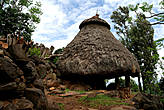 В Карат Консо наняли гида, и он поехал показывать нам свое деревню на холме. Возделывают они в основном сорго и кукурузу, но также выращивают бананы, хлопок ,кофе (предпочитают напиток из шелухи, а сами зерна идут на продажу ). Также занимаются ткачеством, изготавливают прикольное пиво, живут отдельными семьями, на двух сотках умещаются и дом (там живет молодая семья с детьми до 12 лет), и курятник, и загон для скотины, и кухня, все это обнесено забором, калитка в котором запирается чуть ли не на замок (якобы чтобы скотина не сбежала, а на самом деле, кажется , от недоверия в первую очередь к своим соплеменникам). Несколько участков обнесены уже каменной мощной стеной, а вся деревня — еще двумя более мощными. В повсюду витает дух враждебности , в том числе, кажется, и друг к другу, даже сопливые детеныши хоть и бегают, любопытствуя, тем не менее, искренности в этом месте не ощущается .
