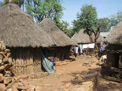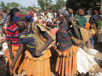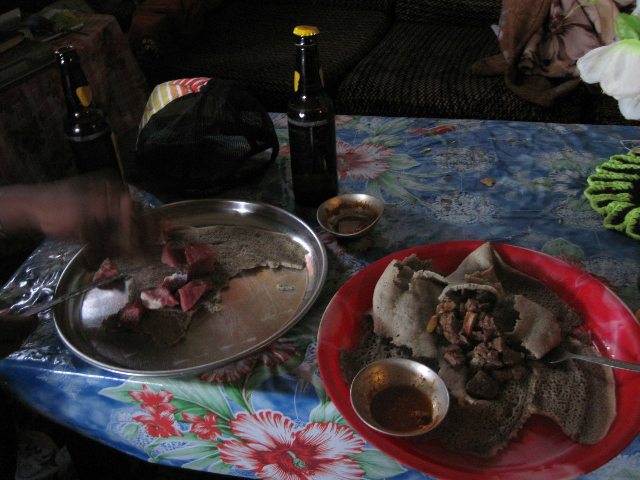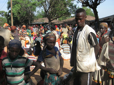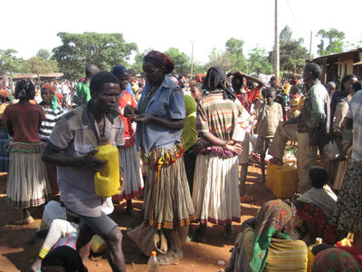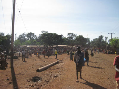 Дальше пошли мы с гидом на консо-маркет, по дороге нам навстречу идут местные жители с купленным товаром, женщины некоторые с голой грудью, несут в основном хворост, на фотоаппарат реагируют агрессивно. На самом маркете сотни женщин сидят на земле с товаром – местное топливо — ветки и угли, соль, какие-то семена и плоды, горы секонд-хенд одежды из гуманитарной помощи, поэтому все и одеты… Мужчины не торгуют, а сидят в местном ресторане, зашли и мы с гидом перекусить. Выделили нам отдельную комнату, мне принесли вареное мясо, а гиду сырое – и стал он его по кусочку отрезать и есть, оказывается тут все сырое мясо едят…