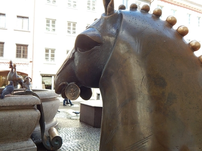 Рядом с фонтаном пасется конь Барбароссы, у которого по преданию было 8 ног, чтобы Император всюду успевал. (Как раз хорошее транспортное средство для Павла!))