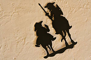 Рыцарь Зеленого Плаща... В одной из глав Дон Кихот побывал в гостях у Дона Диего, которого он прозвал Рыцарем Зеленого Плаща, а также у его сына Дона Лоренсо, который увлекался поэзией и сочинял поэтические глоссы. Дон Кихот посчитал Дона Лоренса, который прочитал ему некоторые свои произведения, лучшим поэтом, которого он знал, оба же дона посчитали своего гостя абсолютно невменяемым. Хотя как сказал Дон Лоренсо: