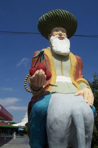 Для меня было откровением узнать, что знакомый с детства персонаж сказок народов Средней Азии родился, проживал и умер на территории нынешней Турции. Считается, что это произошло в XIII-ом веке. То есть он был современником поэта Руми. Выяснилось это для меня, когда в районе Коньи на нашем пути стали попадаться многочисленные фигуры и изображения Насреддина, а также — этнографический музей его имени. Забавный персонаж верхом на осле задом наперед напомнил мне детские сказки. Оказалось, что это — реальный человек, память о котором хранят многие народы Востока, и особенно в Турции.