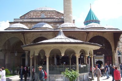 Музей Мевлана — основная достопримечательность Коньи, которая притягивает к себе как местных паломников и почитателей творчества этого поэта, жившего в XIII-ом веке, так и таких туристов как мы, путешествующих на автобусах. Специально ехать в Конью довольно накладно, так как она находится на значительном расстоянии и от Стамбула и от курортов средиземноморья. Для нас же музей Мевляны оказался хорошим поводом заехать в Конью на пути из Каппадокии в Памуккале. Бирюзовый купол над гробницей стал визитной карточкой Коньи — он узнаваем и отличаем от куполов других многочисленных мавзолеев Турции. Мевлана или Мевляна — прозвище (в переводе с фарси "наш господин") поэта Джалаладдина Руми. Посещение музея — хороший повод разобраться с его творчеством. А также со средневековой историей и институтом дервишей. Так что разочарованными не останетесь!