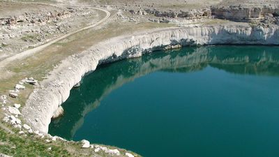Турция — страна, где встретились многие древние и средневековые цивилизации. Через нее проходили основные пути с востока на запад и с запада на восток. Пути невозможны без дорог. Дороги невозможны без придорожной инфраструктуры. Пути предполагали многодневные путешествия с остановками на ночь или, наоборот, на день в жаркое полуденное время. Такие остановки путники совершали в каравансараях, местах, где можно найти воду и тень. Мы остановились у одного из таких каравансараев в Каппадокии. Каменное здание — хорошее убежище от жары и дождя. Изумрудное озеро — прекрасный источник питьевой воды. Действительно, здесь приятно провести ночь, отдохнуть, чтобы наутро снова в путь. Воображение рисует караваны верблюдов и лошадей, навьюченных товаром, как это мы видим в исторических фильмах. Очень примечательное место! Наверное, таких каравансараев много по Турции. Для туристов хорошо обустроили именно этот.
