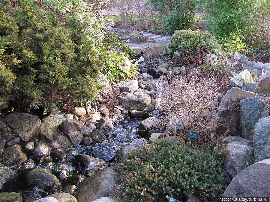 Ручей на горке — каменистом саду.