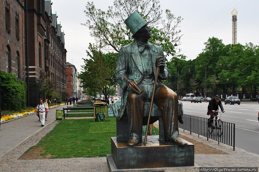 Великий сказочник устремил свой взгляд на парк Тиволи, его красивый павильон находится на противоположной стороне.