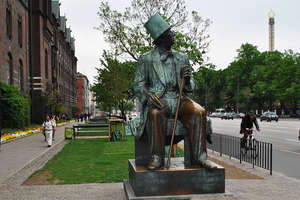 Рядом с Ратушей и фонтаном Вы непременно заметите памятник великому сказочнику – Гансу Христиану Андерсену.