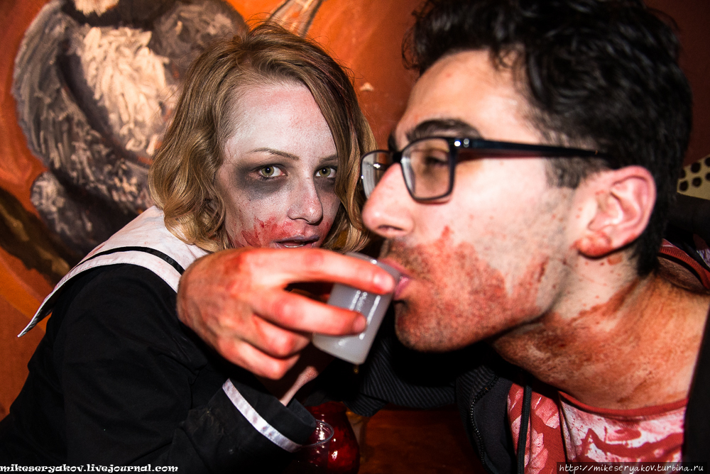 В третьем кафе на входе всем зомби наливали в рот ликёр.