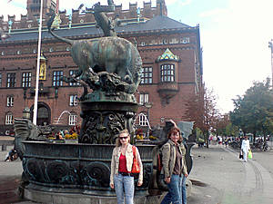 Кстати, высота самой Ратуши 106 метров, а сверху открывается великолепный вид на город. На Ратушной площади находится интересный фонтан со скульптурой «Бык, раздирающий дракона» и колонна с двумя трубящими викингами.