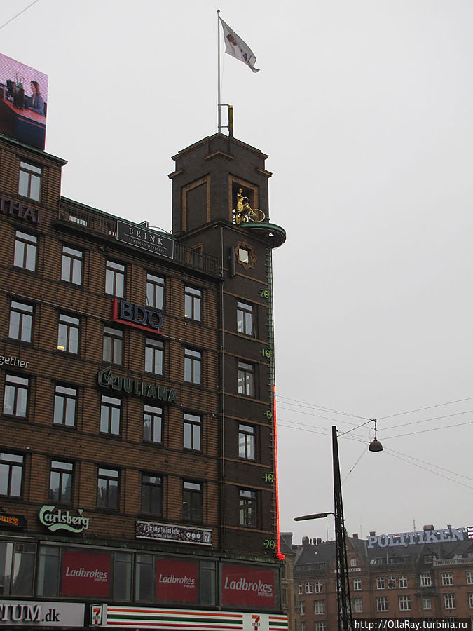 Но и тут не всё совершенно, например, вот это известное здание-термометр рядом с Ратушной площадью: при ясной погоде выезжает велосипедистка, при пасмурной — дама с зонтом. Но механизм не работает давно! Особого внимания заслуживают каналы города, по которым стоит не только совершить прогулку на катере, но и побродить по набережным. Хотя бы, по Gammel Strand. С водой связана и городская легенда, которая среди многих прочих особенно тронула. Вот такую скульптурную группу мы увидели в канале со Старой набережной. Её установили тут в 1992 году. Скульптура создана по мотивам легенды о грустной любви белокурой красавицы Агнетты и Водяного. Последнему удалось не только добиться благосклонности девушки, жениться на ней и прожить на дне вполне счастливо без малого 10 лет, но и нарожать совместными усилиями семеро сыновей. Однако, Агнетта заскучала и запросилась на землю, чтобы, значит, в церковь сходить. Водяной отпустил, сделав ряд, как водится, напутствий, которые супруга тут же и нарушила. В итоге, не вернулась Агнетта к Водяному. Так и застыл он в водах Копенгагена с детьми в ожидании супруги... Поговаривают, что теперь семейка утаскивает на дно белокурых девушек, похожих на Агнетту:)