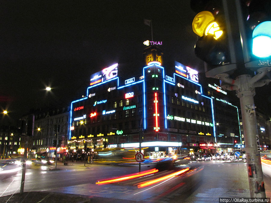 1. Да будет свет? В Копенгаген мы прибыли поздним вечером, и первое, что бросилось в глаза — очень слабое освещение города. Фонари подвешены над дорогами на проводах и имеют вид металлической колбы, что даёт направленный свет — буквально можно рассмотреть несколько метров перед капотом. Это несколько напрягает водителя. Пешеходам приходится также несладко — в тёмное время суток осмотр достопримечательностей и архитектуры затруднён. В населённых и центральных районах делу несколько помогает свет неоновых реклам. При некоторой внешней даже убогости их днём, ночью трудно недооценить этот вклад в освещение:)
