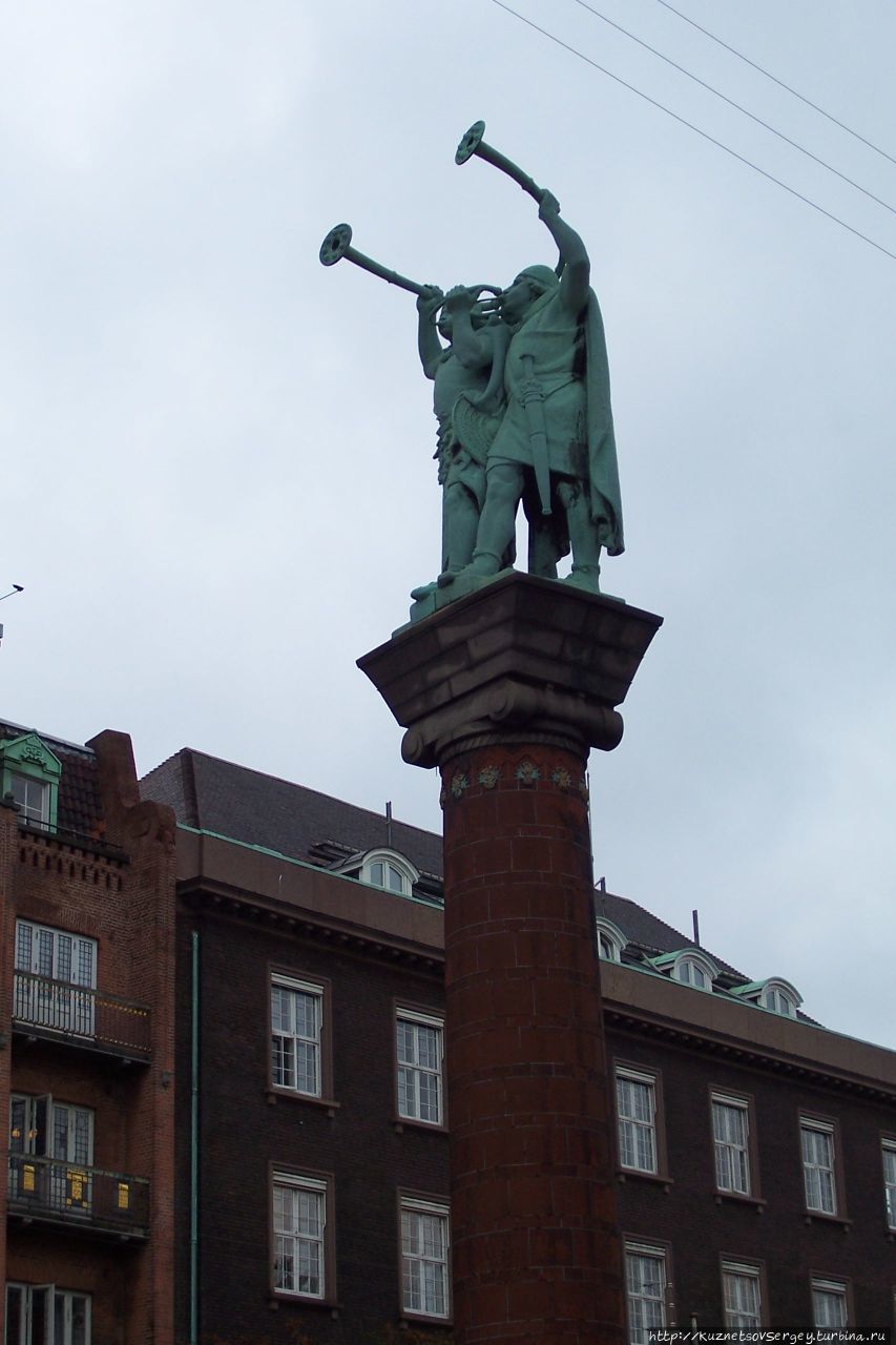 Скульптурная композиция двоих викингов, дующих в трубы — луры, была установлена на ратушной площади вместе с окончанием строительства нового здания Ратуши. Они олицетворяют собой легенду, рассказывающую о том, что в замке Кронборг спит датский герой Хольгер, который придет на помощь Дании в случае опасности, но его надо разбудить звуками труб...