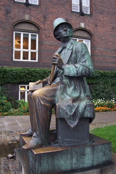 Думаю, для многих посещающих Копенгаген туристов этот город и вообще Дания ассоциируются с именем великого сказочника, которое все мы узнаем раньше, чем название его родного города и страны. Поэтому наличие памятника Гансу Христиану Андерсену на Ратушной площади очень уместно. Сфотографироваться на его фоне хочет каждый! Композиция памятника такова, что позволяет детям залезть на колени сказочника, что делает скульптуру Андерсена почти живой.