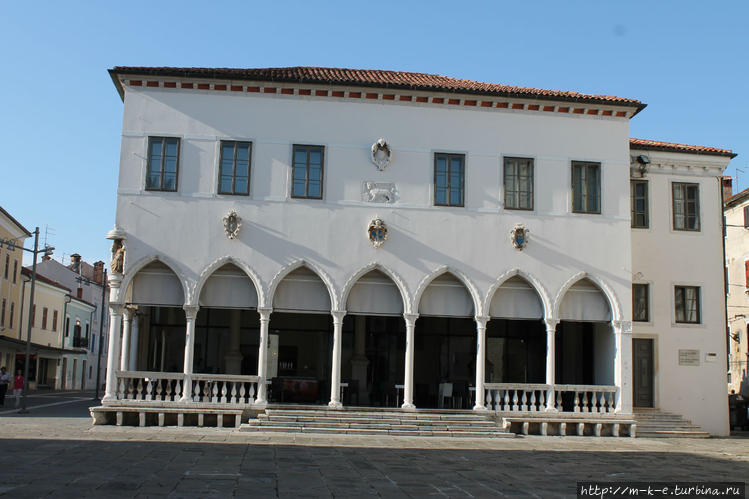 Напротив дворца стоит здание Лоджии с пятью элегантными арками. Наверху Венецианский лев с закрытой книгой, а на углу терракотовая статуя, изображающая Деву Марию с младенцем. Помещен сюда в 1555 году в качестве выражения благодарности Богу за прекращение чумы. Здание служило местом для торговли под крышей, а так же местом для сбора богатых жителей города. Среди прочего здание было единственным местом, где разрешались азартные игры.