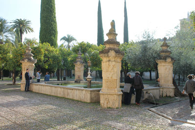 Начнем сначала. Через Ворота Прощения попадаем в Апельсиновый двор. Как и весь комплекс в христианские времена подвергся реконструкции . Тогда пальмы были заменены на апельсиновые деревья, отсюда и название. Весь двор выложен мелким булыжником, что не способствует удобству передвижения. От фонтанов идут маленькие каналы, по которым вода достигает каждого дерева. Здесь же находится касса входа в Мескиту. Рядом у колокольни еще одна касса для подъема наверх. Если есть желание подняться на самый верх, то нужно подгадать время, так как подъем возможен только в сопровождении экскурсовода и по часам.
