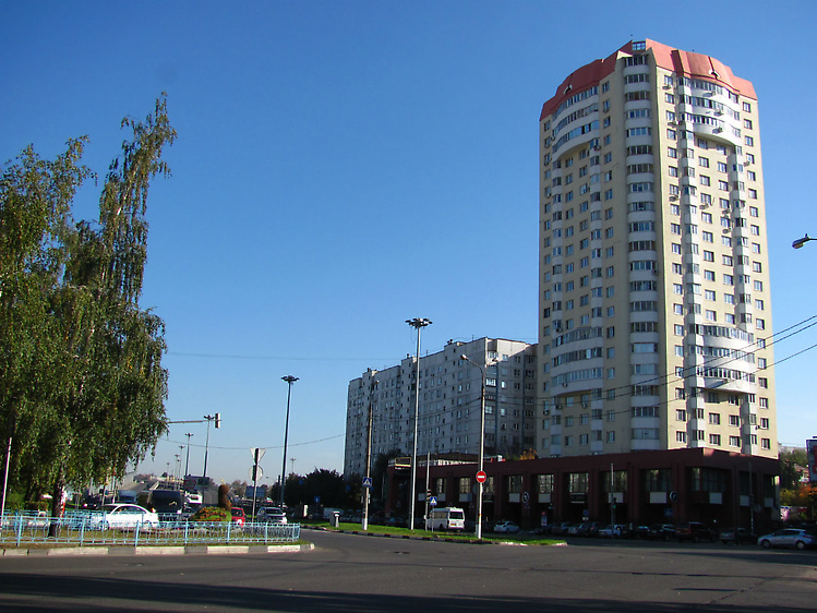 Этот дом современной постройки находится в конце (начале?) проспекта и относится к району Болшево.